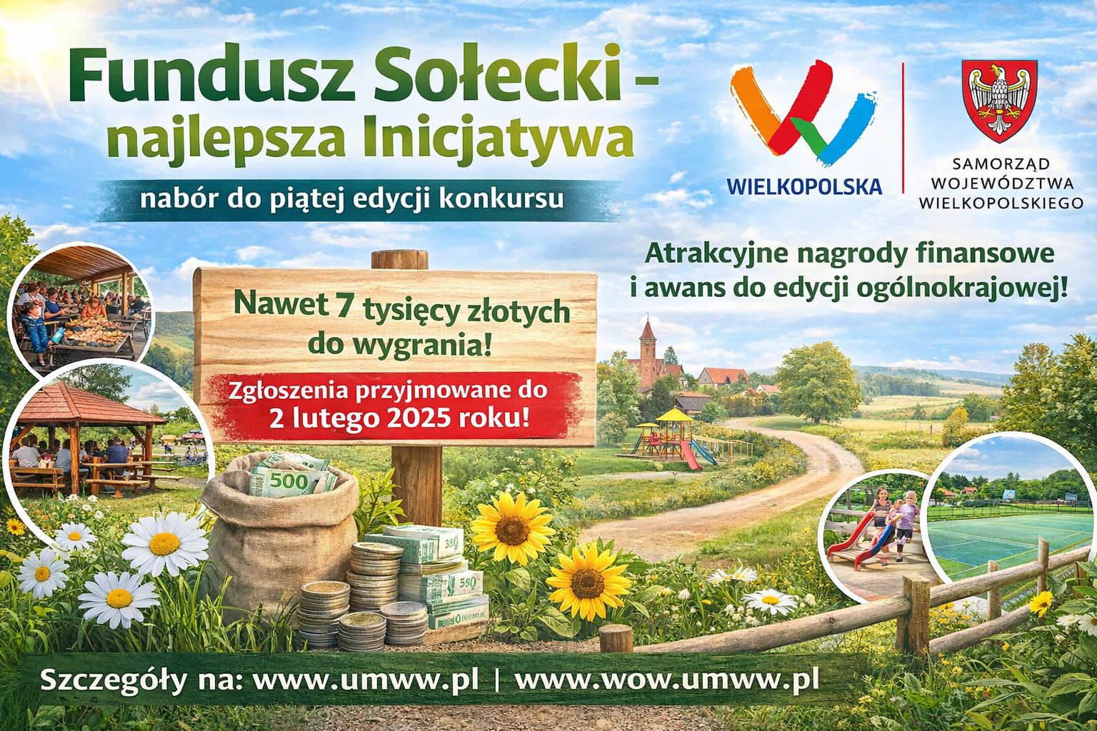 Fundusze sołeckie są podstawą działania, rozwoju i aktywizacji mieszkańców wielu wsi w naszym regionie. Dzięki tym środkom powstają miejsca wspólnego spędzania wolnego czasu, odnowione zostają zaniedbane miejsca stające się dumą i wizytówka lokalnych społeczności oraz wsi. Fundusz sołecki to instrument mobilizujący lokalne społeczności do przejmowania odpowiedzialności za rozwój swojego najbliższego otoczenia. Zarząd Województwa Wielkopolskiego ogłosił  nabór w ramach kolejnej edycji etapu wojewódzkiego konkursu „Fundusz sołecki – najlepsza inicjatywa”. Celem konkursu jest promocja inicjatyw finansowanych lub współfinansowanych z funduszu sołeckiego, które służą wzmocnieniu sołeckich wspólnot lokalnych i poprawie jakości życia na wsi. Konkurs pokazuje także dobre praktyki mieszkańców oraz promuje wieś jako  miejsce do życia  i rozwoju społeczno-gospodarczego.