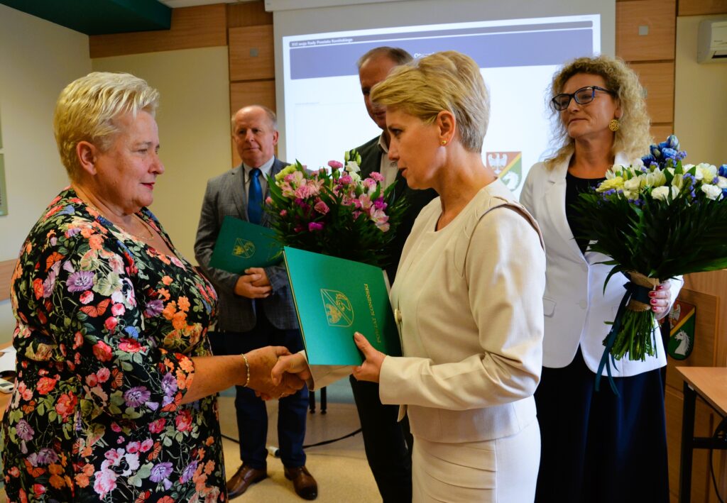 XVI sesja Rady Powiatu Konińskiego, która odbyła się 27 sierpnia w Starostwie Powiatowym rozpoczęła się niezwykle miłym akcentem. Po wielu latach pracy w oświacie swoją aktywność zawodową zakończyła dyrektor Zespołu Szkół Ekonomiczno-Usługowych w Żychlinie Anna Matczak-Gaj oraz dyrektor Zespołu Szkół Ogólnokształcących i Technicznych w Sompolnie – Jacek Żerkowski.